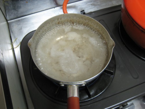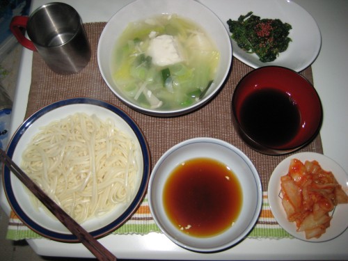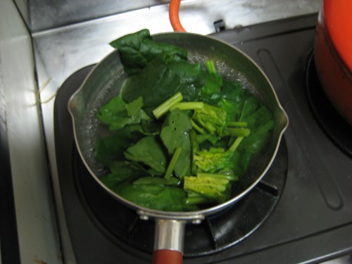 雛是空庵の奇妙な食卓へようこそ。 ここはダメですよ、ヤバイです。 モニター越しにこんにちわ、皆様、寒空の中いかがお過ごしですか? え?寒い? え?勉強で忙しい? え?英語とかもう意味わかんネ? え?ウカールとかもう食っても受かんねぇんだろ? 私めに聞かれましてもお答えできかねます。 ヤバイです。 今回は私めの夕食に焦点を当てていきたいと思います。 ええ、独り者の大学一回生の春休みの食卓にズームインです。 ヤバイですって。 題して・・・、 モリモリー、クッキーング! 「ローズです!」 「マリーです!」 「ローズマリーです!」 「今回は雛是空庵の奇妙な食卓、と題してお送りいたします!」 「ローズかマリーのどちらかを庵だと脳内変換してお楽しみください!」 めんどいので戻します。 さて、ちょっと前に京都に行った話をしましたよね? えーと、吉野家のコピペで。 あんときに「湯豆腐」にはまってしまって。 かねてから自宅でも作ってみたいと思っていたのですよ。 で、今回はそれのレポートです。 思いつきも甚だしいですが。 一応作り方も載せます。 ただし、これは庵の自己流なのでおいしさは保証しかねます。 ご了承を。 でわ、「雛是空庵の奇妙な食卓」スタァーーーートッ!!! まずはじめに材料。 白菜、ネギ、湯豆腐用豆腐、えのきだけ、ホウレンソウ。 さらに、ご飯を炊くのを忘れていたので さぬきうどんを主食にします。 うどん、久しぶりだなぁ。。。 さて、まず湯豆腐に取り掛かる前に付け合わせのほうれん草の胡麻和えらしきものを作っていこうかと思います。 作り方はいたって簡単。 まずはじめにホウレンソウを、 斬ります。 このときに、憎しみをこめるとなおいっそう奇妙な食卓に近づきます。 次に、 湯を沸かします。 ぐつぐつするまで沸かします。 この時のポイントはぐつぐつ煮たってくるまでは「素数を数える」ことです。 素数を数えて落ち着きます。 これでいつコンロが人間様に反逆を開始しても大丈夫ですね。 人間落着きは大切です。 そして程よく沸騰したところで、先ほど斬ったホウレンソウ(だと思う)を 華麗に 投 ☆ 入 ! ! この時に ↑こういう格好になっているとよりいっそう奇妙です。 入れた後はゆでるのですが、この時に塩を一つまみほど入れておきます。 この塩、何と、 庵の気分によって入れました。 雰囲気です。 皆さん、料理なんてその場の雰囲気読んでたらたいてい食べれる物作れます。 そんなもんです。 さて、あとはゆであがるまで待ちます。 その間に次の工程「湯豆腐」作りを開始します。 湯豆腐に使うのは先ほど用意した「湯豆腐用豆腐」「白菜」「ネギ」「えのきだけ」の四種類。 まず白菜から奇妙に調理しましよう。 白菜です。 購入時のサランラップが巻かれたままです。 が、そのまま・・・ 斬りますっ! 肉染みをこめて斬ります。 ラップをはずして更に斬ります。 この時に、斬られた白菜の気持ちを考えつつ斬ると植物●護団体から訴えられません。 料理中にそんなこと考えているので奇妙です。 よりいっそう奇妙になります。 これで白菜のターンは終了です。 次にネギのターンです。 ネギです。 刻みネギでした。 斬るときのコツは包丁を持つ手の反対のほうの手を猫のようにすることです。 間違えても手の甲を斬ることになります。 でもたいていの人は斬る前に気付きます。 気をつけましょう。 また、この時に斜めに切ると鍋物の雰囲気も同時に楽しめてお得です。 これでネギのターン終了。 ちなみにこの時のポーズが こうなっていると、気持ち悪いです。 精神科に行くことを強くお勧めします。 えのきのターン。 えのきですっ! えのきでしたっ! 次。 結構広めの鍋に水を張って沸騰させます。 この時に和風だしを入れることをお忘れなく。 だしがいやなら昆布でも入れておきましょう。 雰囲気が出ます。 沸騰を待っていると、ホウレンソウがゆであがったようなのでざるでとります。 取った後にきれいな布巾でくるんで絞ったり。 手で豪快に絞ったり。 手で繊細に絞ったりして水気を取ります。 とったものがこれ。 今回の味付けは 砂糖少々 醤油小さじ一半 塩一つまみ としました。 これをすりゴマとあえて、適当に混ぜます。 できたらきれいに盛り付けをして、何か赤いものでもおきます(紅ショウガとか)。 今回はこうなりました。 上に乗せたのは梅胡麻ふりかけ。 見た目を無駄に重視することで奇妙になります。 これで付け合わせは出来上がりです。 今回の味付け以外にも ごま油 醤油 とか 塩 砂糖 とか、いろいろ遊べます。 食品で遊んでしまうなんて、なんて罪な人間でしょうか。 でもたぶんおいしいはずです。 基本的に庵は甘辛が好きだったりするので砂糖は入れます。 皆さんは好き勝手にしてください。 で、先ほどの水がわいてきたようなので、切り刻んでしまった食材たちを入れます。 ここに、 こう。 で、少しほっておきます。 その間に主役の準備をします。 今日の主役。 男前豆腐店、