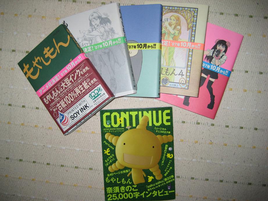 ↑はアニメ「もやしもん」EDのカットです。 だめだ、かわいい………orz 今まで見てきたアニメとか漫画のキャラでも、コウジカビが一番かわいく思える俺はどこかおかしいんですか、そうですか。 萌え~、とかこいつには使えない。 「萌え」=「かわいい」とかいう雰囲気になってますけど、要はあれってオタクの観点での可愛さでしょ? 自己満足の塊なんじゃないかと最近思い始めたんだ。 うん。 まぁそんなことはさておき、今回の紹介する本はこちら。 上が今連載中の漫画「もやしもん」。 下はコンティニューというアニメ、漫画、ゲームの雑誌で今月号はもやしもん特集でした。 あらすじを簡単に紹介するならば。 「某農業大学」に入学した主人公、「沢木 惣右衛門 直保(さわき そうえもん ただやす)」は、「菌やウイルスの存在」を知覚し、会話する事ができるという不思議な能力を持っていた。彼は、農大に在籍しながら菌やウイルスに関する様々な騒動に巻き込まれていく。(80%wikiより) といったもの。 いわゆる学園、学校ものなのです。 いい例を挙げるなら「動物のお医者さん」の農大バージョンみたいな。 世界初の菌漫画という謳い文句を掲げつつ絶賛連載中です。 (↑については作者の石川先生が菌漫画は「ナウシカ」が先かもしれない、とも言っておられますが。。。) 話の流れとしては主人公の直保が大学生活を過ごしていくもの、とありきたりな流れですが、そこは農大という特徴をフルに出しつつ、また直保以外のキャラクターも入れて大いにかき混ぜまくってます。 話のつなぎがうまいし。 しかし、ここで注意なのが教授の存在。 まぁ大学ですから? 教授の一人や二人いてもおかしくないわけで。 さらには主人公の周りを取り巻くのは「菌」とくればこれはもう必然的にも専門用語とか出るんです。 ある意味、士郎正宗の欄外ボヤキ並みの専門知識の理解力を要します。 が、とりあえずわかんなくても大丈夫。 しっかり読んでもためになりますが、読んでなくても話は理解できます。 まぁ主人公のお話ですからね、実質。 でも、へぇ~と思わずうなってしまうこともしばしば。 読むか読まないかを選ぶならぜひ詳しい説明の部分も読むことをお勧めします。 また、そういった点でいえば「菌」のみしか出てこない話もあって、そこではまさしく「菌」についての話が繰り広げられます。 でも大丈夫。 君たちは菌を見てかわいいなぁと感じればいいんだ。 直保とか、人間キャラもいいけど、もやしもんは菌なくして語れない。 否、存在できない!! 「菌をめでる漫画」 それがもやしもんでしょう! ちなみにー。 第6巻が2月22日?に発売予定ですが、限定版にはオリゼーぬいぐるみが付属。 え? 俺ですか? 買いますよもちろん。 限定版を。 もう予約しました。 大きさがまだわかりませんが、できるならばクッションくらいの大きさが欲しいところ。 まぁ単行本付属品ですからね、期待は膨らみにくいですけど。 またアニメは去年の10月から1クール形式で放映されましたが、最近のフジテレビアニメは本当にクオリティ高いな、おい。 ノイタミナ枠では作画が悪い、面白くないアニメは今のところ少ないですよ。 (ちなみに、もやしもん以前はのだめでした。) 今現在放送中の「墓場鬼太郎」も神OPから始まり作りも細部も凝ってますしね。 ほんと、感服です。 ともかく、もやしもんは面白い。 ちょっと見てみたいなぁと思ったあなたのためにニコニコからいくつか動画をご紹介。 OPは削除人のお仕事上消されたようです;; youtubeから。 いちおうEDも。 曲がうまい選択でしたね、キャラなしで菌だけというのもイイですwww ニコニコからオリゼー他をガラス細工で作ったというつわもの動画。 というか、プロだそうですwww これぞプロの犯行か…www じゃ、これを機に見てみようかなという皆様の興味がでてくるよう、 かもすぞ~! PR 2008.01.21 Mon 21:05:40 【わっち】絵の出来はともかく声やばい【わたし】狼と香辛料放映中。