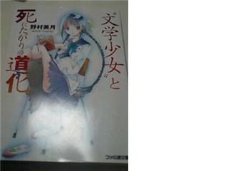 「文章」 =文字を連ねてまとまった思想を表現したもの。普通には韻文に対して散文という。 (広辞苑より。) まとめて言えば、語が集まったのを単語とし。 単語が集まり文となり。 文が集まり、段落になり。 段落が集まり、章になり。 章が集まって、本ができる。 と本を捉えることは容易ではあります。 では、本とはなんでしょうか? 言うまでもなく、書籍などが本です。 が、それだけで本と言うのはなんか悔しい(何が?ww)。 だから持論を言わせてもらうと。 「感情を載せ、意思を伝える紙媒体」 とでも言いましょうか。 人が今まで作り上げた技術の中でも、最も繁栄し、そして生き残っているのがこの本というものでしょう。 まぁ、文字が衰退すれば技術も発展しませんけど;; そういう点で言えば、文章を書く、印刷して本にする、それを保存する。 この技術は人類の誇るすばらしい技術の一つであると庵は思います。 それを読める、 愛せることはなんとすばらしいことか!!! と、ココまでの考察で小難しい事言うのかなと思ってたら甘いんだよね☆ 今回はライトノベルのご紹介です。 「文学少女と死にたがりの道化」 著:野村美月 ファミ通文庫から出ているこの作品、一言で言えば面白い。 ま、面白くなければ紹介なんぞするかという遠回り的な補足事項を加えつつもこの作品の魅力について語りましょうか。 物語のあらすじ: 「どうかあたしの恋を叶えてください!」何故か文芸部に持ち込まれた依頼。それは単なる恋文の代筆のはずだったが・・・・・・。物語を食べちゃうくらい深く愛している“文学少女”天野遠子(アマノトオコ)と、平穏と平凡を愛する、今はただの男子高校生、井上心葉(イノウエコノハ)。二人の前に紡ぎ出されたのは人間の心がわからない、孤独な“お化け”の嘆きと絶望の物語だった――!(以上巻末より) 登場人物は文学を文字どおり「食べてしまうほど」愛してやまない文学少女の天野遠子と、もと天才美少女覆面作家の名を持つ平穏平凡を愛す男子高校生、井上心葉。 この二人を軸としてすすんでいくのが「文学少女シリーズ」です。 今回はその第一巻目、「文学少女と死にたがりの道化」です。 この本を実は結構前に購入しておきながら今まで読んでいなくて、今日たまたま授業の間にいい暇な時間が空いていたので、家から持参して学校で読んでいたのですが。 これは面白い。 それもそのはず、「このライトノベルがすごい!」という本で総合ランキング2007年度、第八位、そして2008年度の総合ランキング第三位という記録を持ち。 また2008年度の女性キャラランキングでは主人公の遠子が、同じ系統キャラの長門を抜いて二位の座に輝いているという人気っぷり! (ちなみに2008年度女性キャラ一位はハルヒでした;;脱却しろよ皆ww) そんなに受けよかったら面白いよなぁ、と思いつつ買ったことを思い出しましたが。 人気が頷ける設定と作風に、テンポのよい書き方、さらには文学少女の薀蓄。 作風は少しだけ西尾維新の「戯言」シリーズに似ているかな?とも思いましたが、でもそんなの関係ねぇ!といわんばかりのオリジナル性の強さ。 すべてにおいてしっかりとした進みと、巧みな文章で書き進めている作品です。 実際、ほんの二時間ほどで読んでしまったほどに熱中できてしまうものでした。 中身はシリアス系統のミステリ物なのですが、その雰囲気をぶち壊すかのようなキャラの遠子(トオコ)。 と、心葉(コノハ、と読みます。間違っても言の葉ではないので☆)の遠子に対する突っ込みはライトノベルを感じさせる作りになっていて。 またそれとは逆に、心葉の持つ暗い過去に少しシンクロづつしていく謎に、さらに深まる謎の描写はハードカバーでマジに書いても売れそうなしっかりとしている物。 その真相を暴いていく二人の姿と、普段のお茶らけた二人をしっかり作り出しているところも、ものすごく読みやすくてよかったですね。 掛け合いはライトノベルらしいにやけてしまうようなものもありますし。 ただ、問題があるとすれば「文学」について少々お詳しすぎること、かな? タイトルどおり遠子は“文学少女”で、実際は本を読んで、「食べてしまう」という妖怪だそうなのですが、そこに出てくる薀蓄がすさまじいこと。 要所要所に遠子が読んでいる本には遠子自身から解説が加えられ、またその描写も詳しすぎる、というわけでもないのですが、結構マニアックな人も出てくる(たとえばポール=ギャリコなど・・・)のでそこら辺のことが分からないと楽しめない、という部分のあるかと思います。 しかし、その本編もひとつの文学作品がテーマとなって話になっているので、これを読んだあとに元ネタとなっている文学を読んでみるのも良いと思いますね。 文学入門用のライトノベル、とでも言いましょうかww これはいわゆる萌えとかではなく、庵としては「文学を語るライトノベル」であると思います。 前述しましたが、話の根元にひとつの文学作品がある(