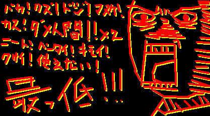 Weekly IORIBINA!!【本】と【アニメ】と【ゲーム】で生きてるライターが贈る週刊の習慣情報ブログ!! ゆっくりしていってね!!PAGE | 23 24 25 26 27 28 29 30 31 32 33 | ADMIN | WRITE 2007.11.24 Sat 19:25:03 非難されるくらいなら少しくらい夢見たって良いじゃないか!!絶望した! 毎回、微妙に変わっている作画に絶望した!! 第三集購入記念。 今回はめんどいので携帯写真はまた今度。 なのでキャプチャ祭り。 道に落ちてるお金の扱い方。 大金なら交番に届けるけど。 千円くらいなら少し悩んでパクってしまう。 五百円なら迷わずパクり。 百円であればネコババ当然。 しかし、十円、一円になれば見向きもしない。 人って白状。 皆さん、これからの時代、って言うか現代にとってストレスは天敵です。 周りの人間からの非難はとてもストレスになることでしょう。 そこで皆さんに必要なのは、 です。 では、智恵先生、よろしくお願いしますっ! ・・・・・。 ・・・・・。 ・・・・・。 そこの、傍若無人な生徒の皆さんも☆ ガムシャン。(千里) マンガ眼鏡。(晴美) ドMミイラ。(あびる) おかっぱ背後霊。(まとい) 沈黙しっぱなしで、お前S・セガールかよ(^∀^)/。(める) がーん。 智恵先生ひどい・・・。 非難訓練ですからwww し、しかしこれは・・・。 美人にののしられるなんて・・・!(久米田康治) これはっ、良いかもしれませんっ!!(神谷浩史) 罵ってください! 私たちを、罵ってくださいぃ!! (これは知恵先生の罵り言葉から来ているんですねー☆) しっかし、てめーらよっぽど暇なんだな! こんなアニメのDVDなんか買っちゃってよぉ!! 普通に真面目に生きてりゃ、別に罵られることもねーんだよ!!! つうか、そこのお前、そう、そこの働いたら負けとか思っているお前!!!! お前は、その時点でお前は人間として落第者だっつぅの!!!! だからオタク=ニートとか思われて、真面目なほかのオタクたちが迷惑こうむるんだろうが!!!!! 夜中にアニメばっか見てんじゃねー!!!!!! この糞ニートがぁぁあぁぁぁあ!!!!!!! ニコ厨氏ね☆ 刀、 , ヘ /´ ̄`ヽ /: : : \_____/: : : : ヽ、 ,. -‐┴─‐- <^ヽ、: : : : : : : : : : : : : : : : : : : : : : } /: : : : : : : : : : : : : :`.ヽl____: : : : : : : : : : : : : : : : : : / ,. -──「`: : : : : : : : : :ヽ: : : : : : : : :\ `ヽ ̄ ̄ ̄ フ: : : : :/ /: :.,.-ァ: : : |: : : : : : : : : :\: : : : :: : : :ヽ \ /: : : :/  ̄ ̄/: : : : ヽ: : : . . . . . . . . . . .、 \=--: : : :.i / /: : : : :/ /: : ∧: \: : : : : : : : : : ヽ: :\: : : 〃}/ /: : : : :/ 、 . /: : / . : : :! ヽ: : l\_\/: : : : :\: ヽ彡: : | /: : : : :/ |\ /: : ィ: : : : :.i: : | \!___/ ヽ:: : : : : : :\|:.:.:.:/:! ,': : : : / |: : \ / / !: : : : :.ト‐|- ヽ \: : : : : l::::__:' :/ i: : : : :{ |: : : :.ヽ l/ |: : :!: : .l: :| \: : : l´r. Y {: : : : :丶_______.ノ: : : : : :} l: : :l: : :ト、| 、___,ィ ヽ: :| ゝ ノ '.: : : : : : : : : : : : : : : : : : : : : : / |: : :ト、: |: :ヽ ___,彡 ´ ̄´ ヽl-‐' \: : : : : : : : : : : : : : : : : : イ !: :从ヽ!ヽ.ハ=≠' , ///// ///u /  ̄ ̄ ̄ ̄ ̄ ̄ ̄ ̄ V ヽ| }/// r‐'⌒ヽ イ〉、 ヽ、______ー‐‐' ィ´ /:/:7rt‐---、 べ、べつにニコ動嫌いって ィ幵ノ ./:/:./:.! !: : : : :!`ヽ そんなわけじゃないんだから r‐'T¨「 |: | !:.∨:/:./: :| |: : : : .l: : : :\ 変な勘違いしないでよね! /: : .|: :| !:.!ィ¨¨ヾ、:.:/ !: : : : l: : : : : :.\ 本家らきすた出したのってこれが始めて・・・?じゃないよ、うん。 ツンデレバイニー☆ PR 2007.11.22 Thu 18:16:12 人間悪乗りのしすぎはいけない。わっくわく~、てっかてか~